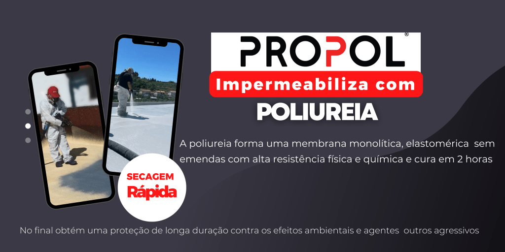 A poliureia é um sistema “combinado” bicomponente que permite uma impermeabilização e proteção de superfícies de forma eficaz quando aplicado por máquinas de Hot Spray. Esta tecnologia de poliureia modificada, que, ao ser aplicada a um substrato devidamente preparado, forma uma membrana monolítica, elastomérica e de alta resistência física e química com cura em duas horas